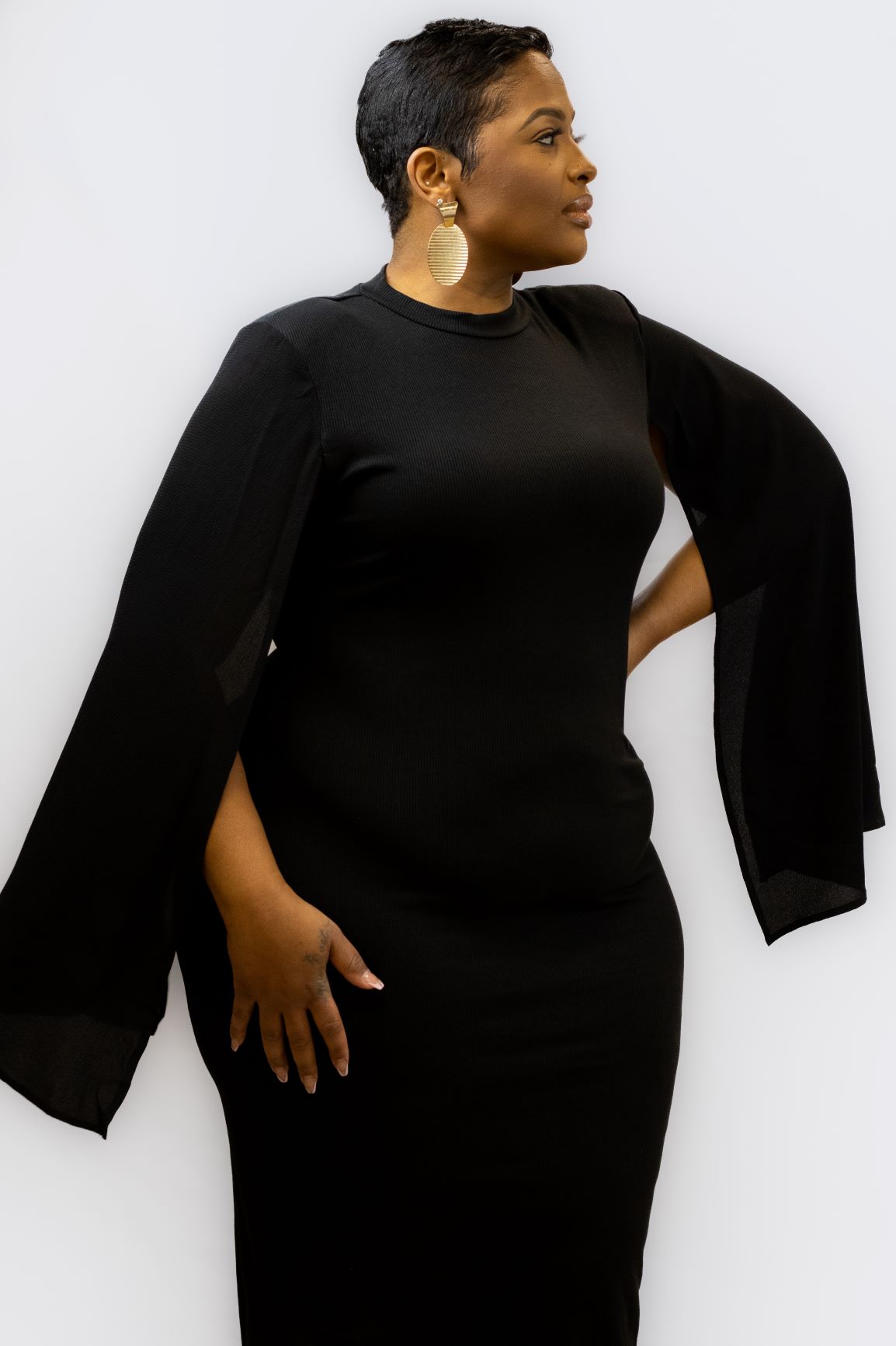 Model is wearing an 1XL Poly, Rayon, Spandex